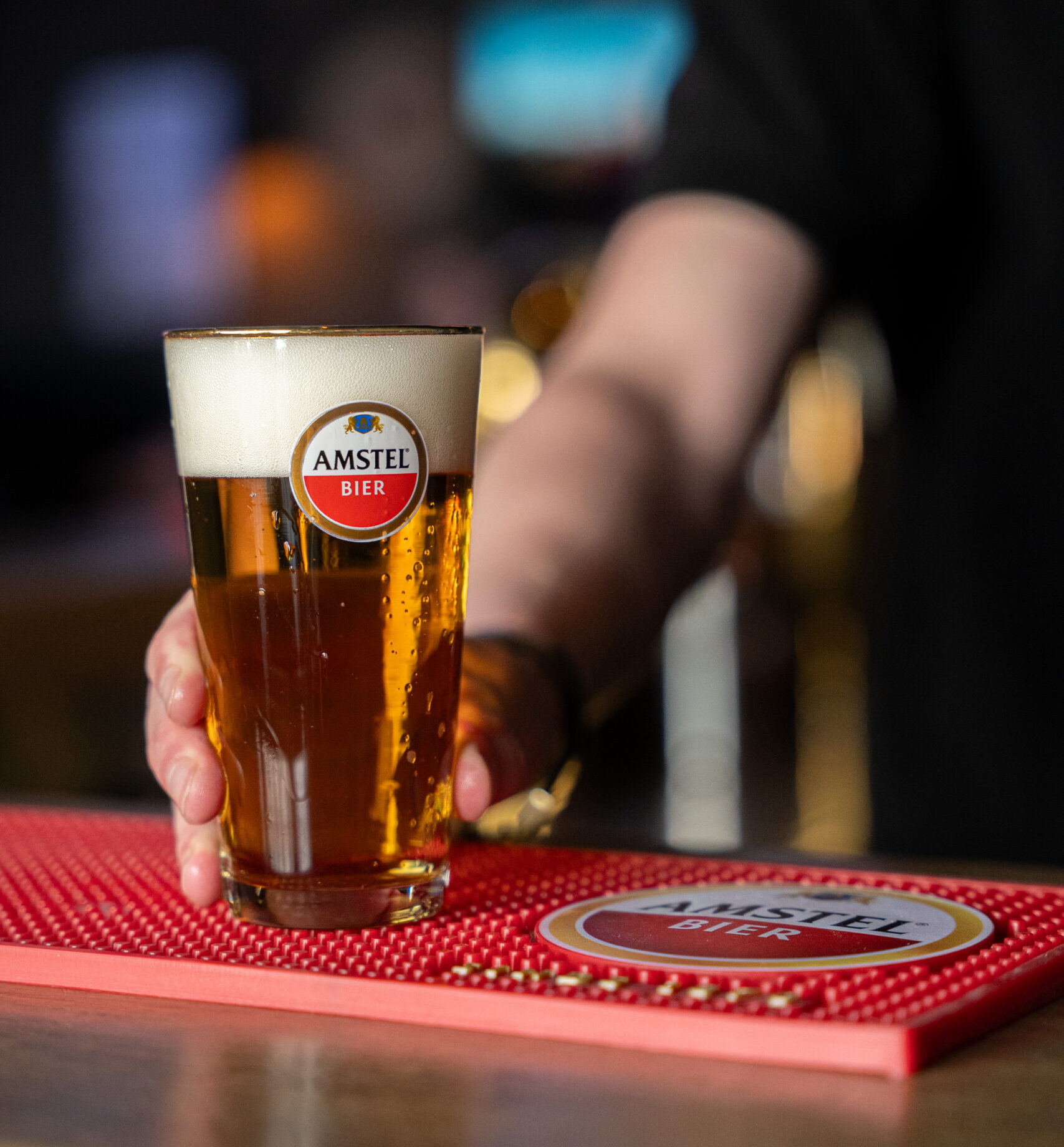 Met maar liefst 4 wisseltaps van Brand, Stëlz, Texels en Duvel kunnen wij elke maand en nieuw, verfrissend biertje van de tap aanbieden. Standaard staan Amstel Pilsener, Amstel Rosé en Guinness voor je op de tap. Ook op de fles is er voldoende keuze. Zo hebben wij 20 soorten op de fles, van een heerlijke blonde t/m een frisse fruitige.